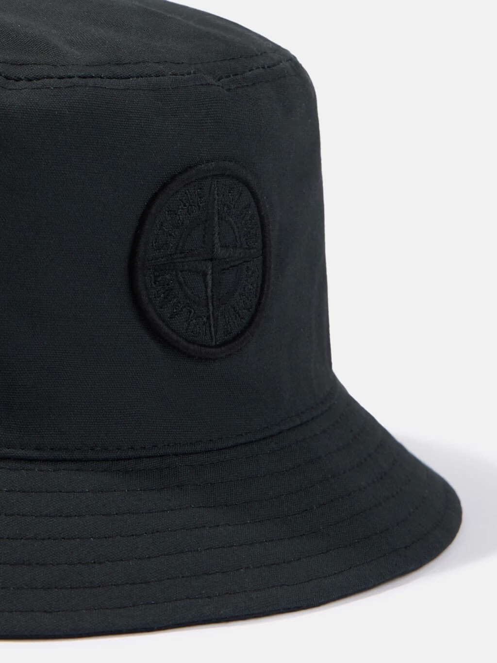 Bucket hat in cotton featuring raised embroidered Stone Island Compass logo, an inner contour band, and black cotton lining.