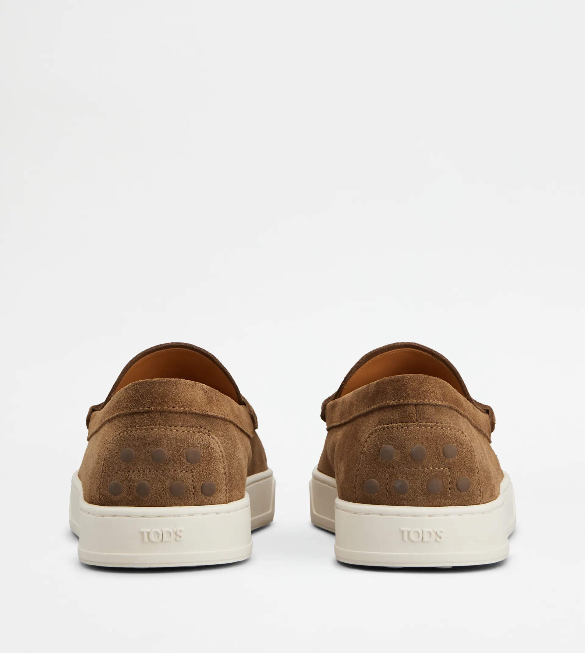Loafers with penny bar, stamped Tod's monogram and exposed handmade stitching. Crafted in velvety calfskin suede, they feature a rubber outsole with grooving and embossed rubber pebbles.